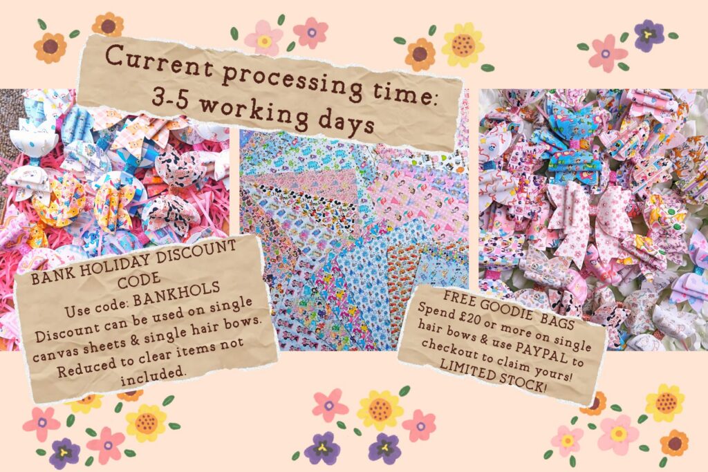 To give your bows that perfect thickness and structure I do recommend pairing this canvas with glitter fabric sheets or you can also use felt backing. My personal special trick to give my bows that extra support is to double up on the bottom layer of the hair bow. This is a new trick I have learnt which is brilliant and the cheaper option saving you having to buy extra materials.